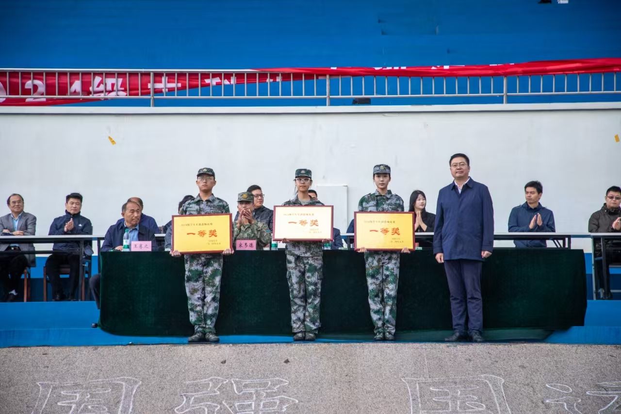 2024级本科生军训汇演暨总结表彰大会在开封明伦校区、金明校区和郑州龙子湖校区各体育场隆重举行。我院第三十四连荣获2024级学生军训队列会操二等奖。