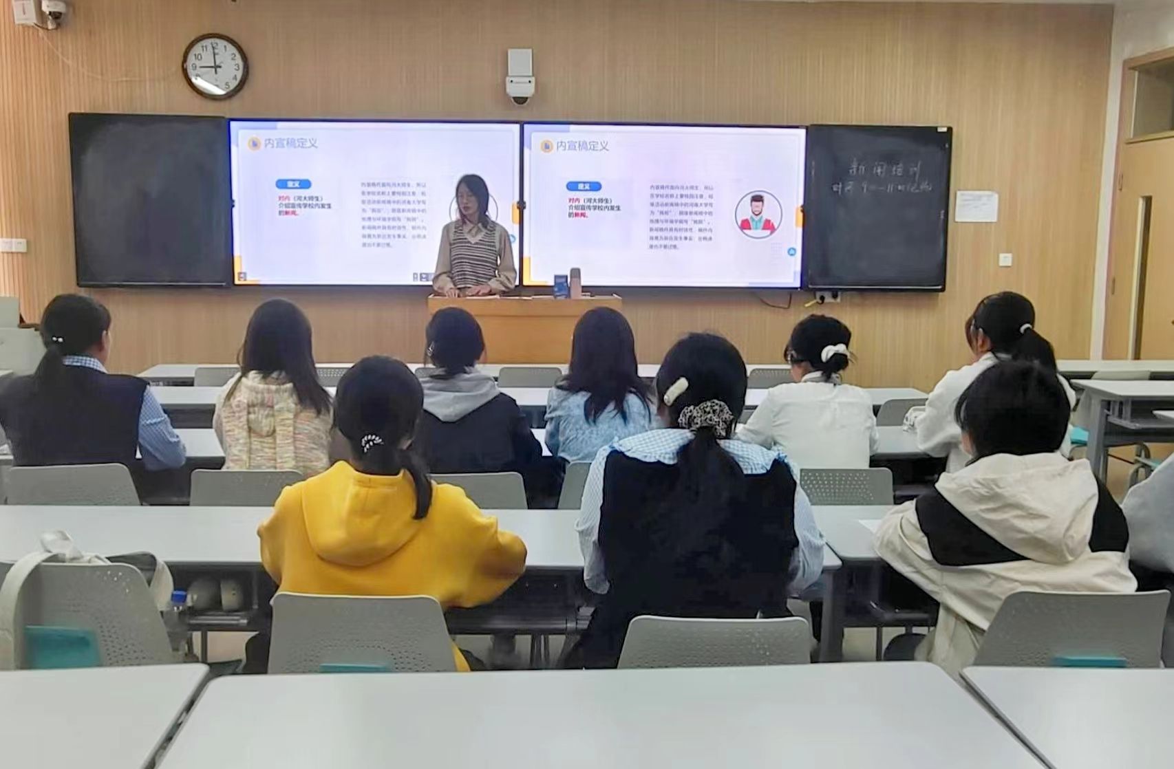 明伦校区广播站新闻部部长谢雨欣于金明校区综合教学楼3207教室为我院学生会新闻外宣部成员进行新闻培训。