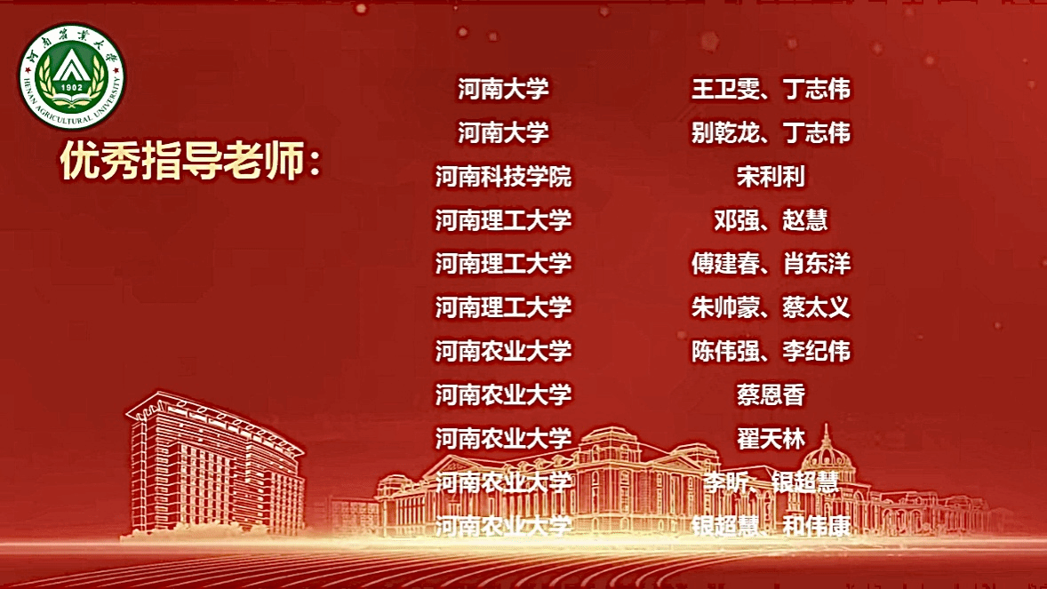 与此同时,谷蕾、丁志伟、张丽君、王卫雯、别乾龙五位教师凭借其精湛的专业指导和不懈辛勤付出,荣获了优秀指导老师的殊荣。他们不仅在学术研究上主动给予学生悉心指导,还在比赛中为学生提供了宝贵的建议和全力的支持,为我院参赛学生的优异成绩提供了坚实的保障。