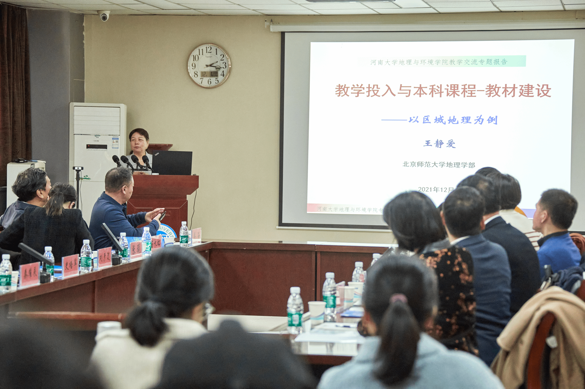 会议伊始,刘彦随对王静爱的国家级教学成果进行了介绍。接着,王静爱围绕本科教学理念、中国地理课程建设、区域地理教材建设与教学成果启示四个方面作《教学投入与本科课程-教材建设——以区域地理为例》的学术报告。她认为,高校教师肩负着培养创新性人才的社会责任和历史使命,应以学生为中心,注重高阶能力的培养。同时,她指出课程教学团队建设、教学过程实施、教学方法创新及课程思政的重要性,并就传统教材如何焕发新活力以及现代教材如何表现出国际化、数字化、多样化等当前教材建设提出一系列问题。此外,她还强调,认真做好教学工作是取得教学成果的根基,教师应坚守教学的初心和使命,努力提升课堂教学质量。