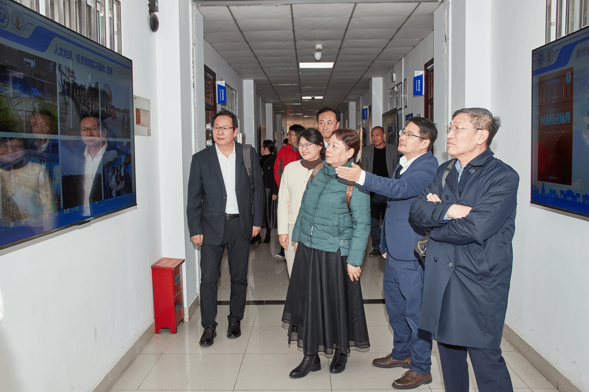 丁志伟带领史培军和王静爱参观了学部教学实验室,详细介绍了学部师资培育、课程教材建设、虚拟仿真实验、本科生野外实习、国际暑期学校等工作进展。随后在我部秦奋教授、王海鹰副教授的带领下,一行人参观了东英博物馆和地理学智慧教学平台。期间,秦奋和王海鹰向大家详细讲解了学部虚拟仿真技术服务黄河国家战略的应用情况。
