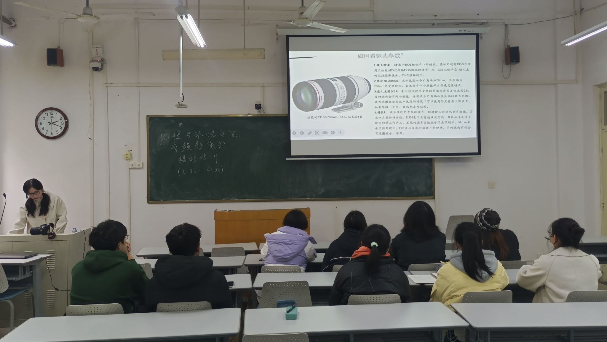 党委宣传部摄影部主任李屏屏于金明校区综合教学楼3107教室为学生会音频影像部成员开展“新闻摄影”培训。