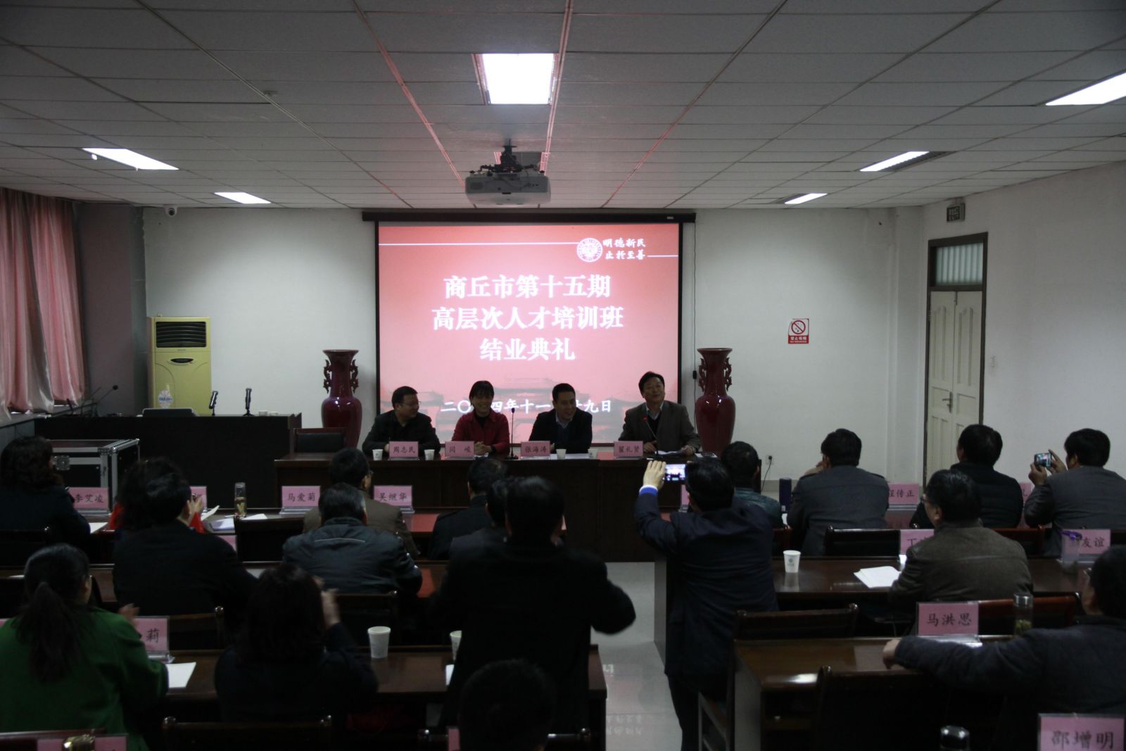 相关领导及其工作人员表示感谢,对前来授课的各位教师表示敬意。同时也对参训学员在培训期间严格遵守培训纪律,保持了良好的学习风气和昂扬进取的商丘人风貌,圆满、出色地完成学习任务表示肯定。并寄望于学员们回到工作岗位后,能够勤于思考,勇于实践,把所学用在实际工作中,为全面推进商丘社会经济发展做出贡献。
