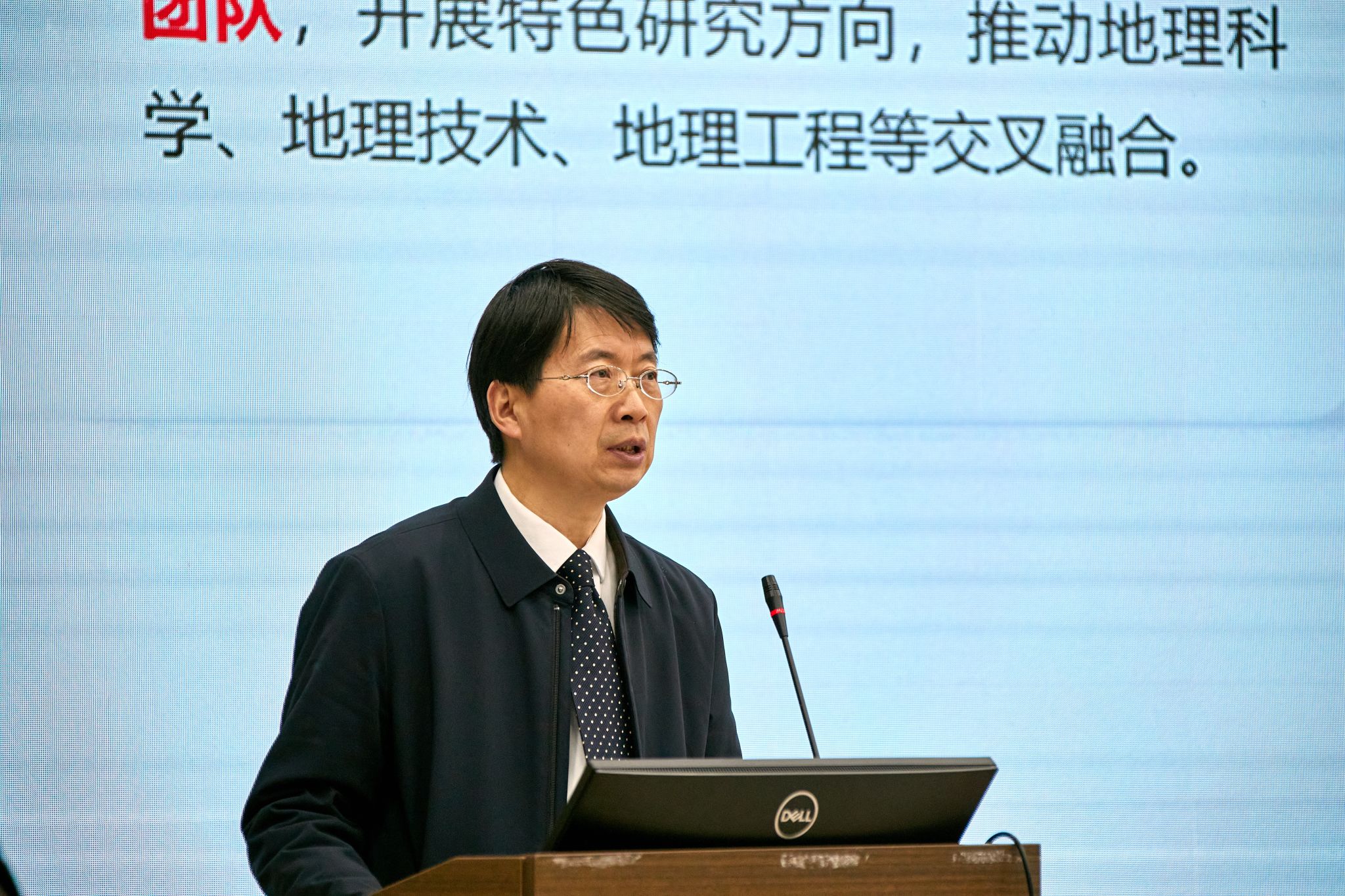 刘彦随致开幕词。他指出,学部的成立是地理学顺应新时代转型发展的必然选择,旨在推动学科向“系统性诊断、情景化模拟、工程化实践、产业化应用”转变。他强调,学部将致力于打破学科壁垒,整合校内外资源,以“一心一意一流学科”为目标,强化地理学综合优势,服务国家战略需求,通过多学科融合平台和创新合作机制,加速国际化进程。他呼吁全体师生团结奋进,推动河南地理学科早日跻身“国家队”,为“双一流”建设和中国式现代化贡献地理力量。