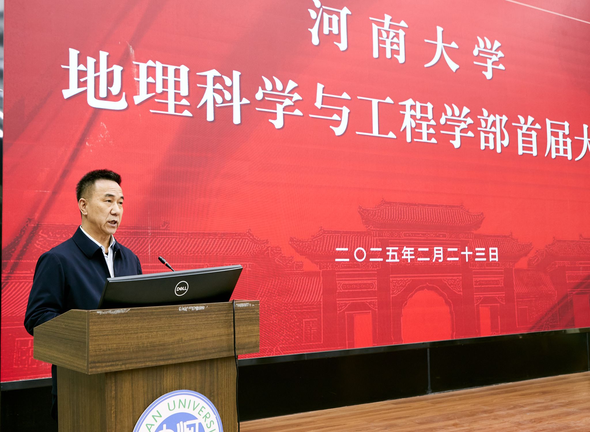 党委书记乔家君聚焦创新文化与思政育人,提出以文化赋能师资建设和学科发展。学部主任助理董冠鹏教授则详解2025年度科研规划,明确通过聚焦“36X领域特色”、实施“揭榜挂帅”机制、强化学术交流等举措,补足高水平论文与科研项目短板,力争产出标志性成果。苗长虹教授总结指出,本次大会既是学部成立的宣言,更是迈向一流学科的冲锋号。他号召全体师生以“爬坡过坎、敢为人先”的拼搏精神,将规划转化为行动,将愿景落地为实绩,共同书写河南地理学科高质量发展的新篇章。