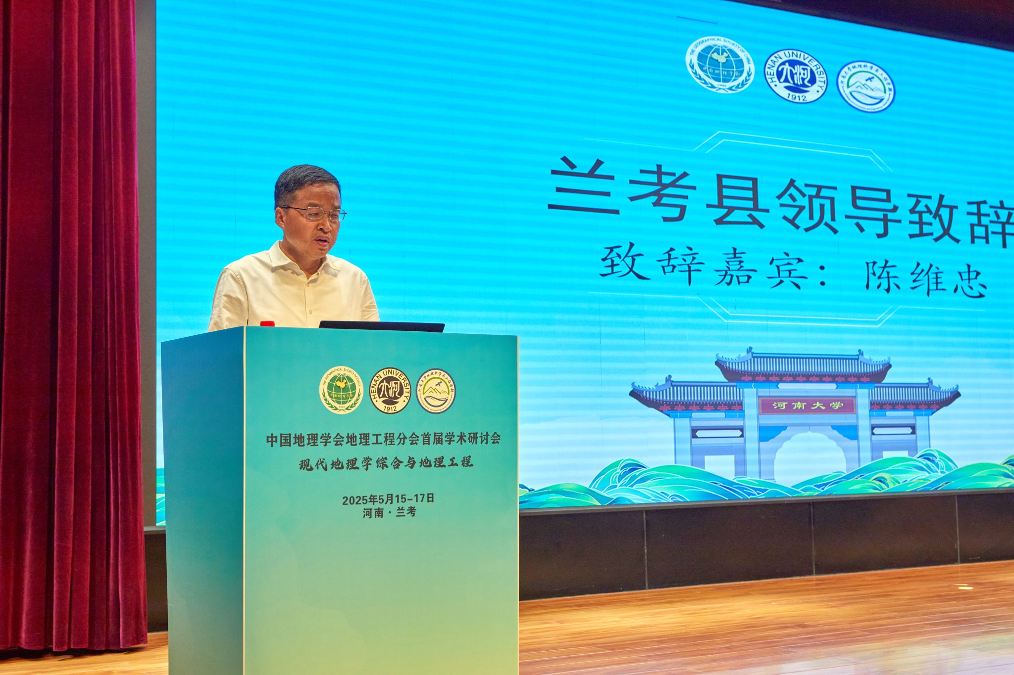 陈维忠在致辞中热烈祝贺中国地理学会地理工程分会首届学术研讨会在兰考举行。他深情回顾了六十年前焦裕禄带领群众战“三害”的壮举,通过种植万亩泡桐林、构建排涝系统等工程,将盐碱荒地变为中原粮仓。兰考实施30万亩高标准农田建设,新增耕地1200亩,粮食亩产提升30%。在黄河滩区治理中,运用地理信息技术科学规划8.9万亩土地,发展“光伏+生态养殖”产业,惠及1.2万搬迁群众。他特别提到,刘彦随、苗长虹教授团队运用地理工程技术助力破解当代"三害"治理难题,彰显学科交叉与融合创新力量。陈维忠向全国地理工程专家发出“产学研合作邀请”,承诺将依托国家乡村振兴(兰考)研究院搭建实践平台,全力保障科研项目落地。当前兰考正以焦裕禄精神为引领,推动地理工程技术在高标准农田建设、智慧农业、生态修复等领域的深度应用,谱写新时代“敢教日月换新天”的科技篇章。