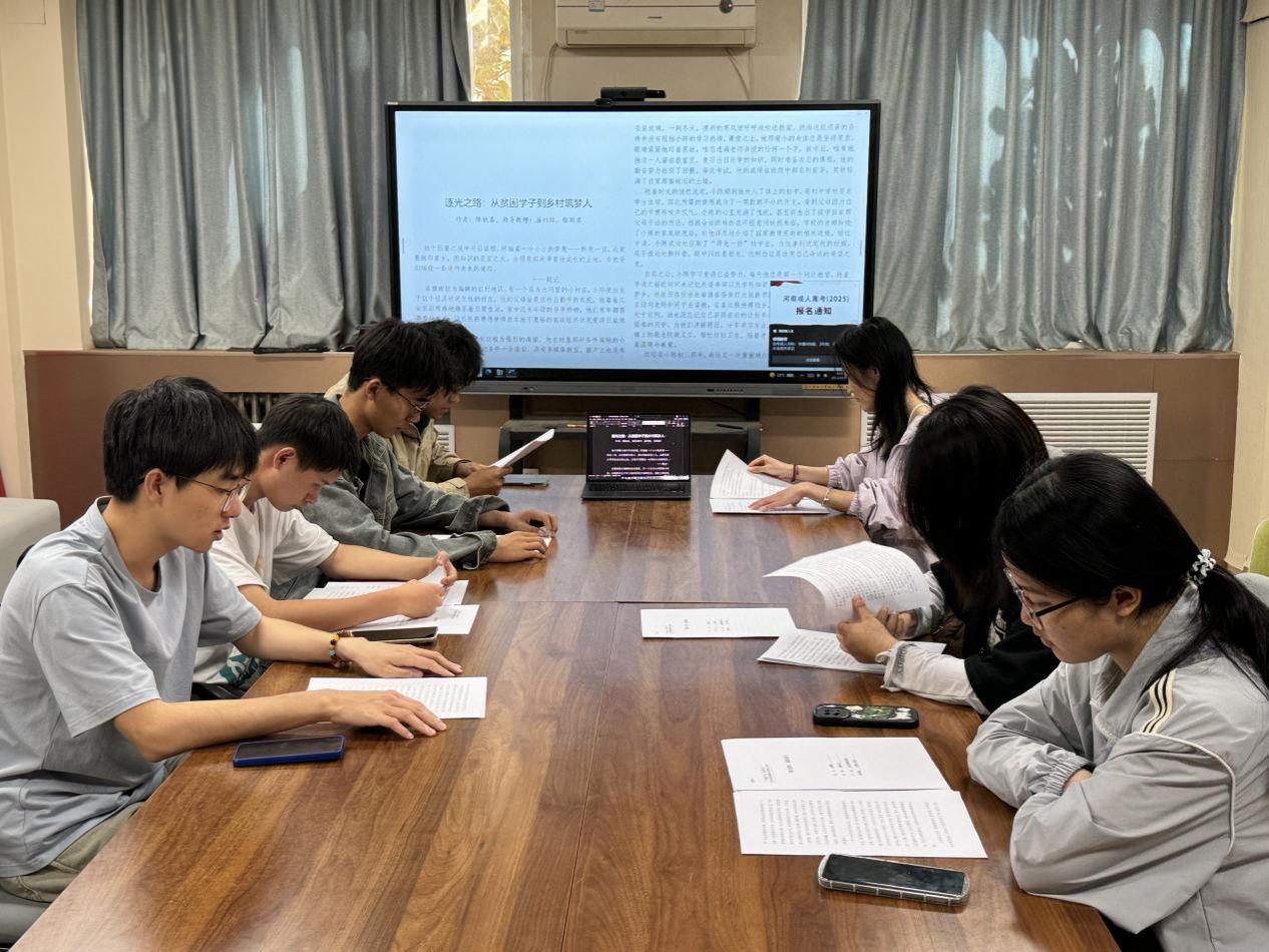 组织对线上投票中排名前36名的作品进行线下集中评审。评审小组成员对每篇作品从内容质量、思想深度、情感表达、文字表达等多个维度进行了认真细致的评价与热烈讨论。最终评选出院级一等奖3名、二等奖6名、三等奖9名,并将其中一等奖与二等奖作品推荐至校级评审展示平台。