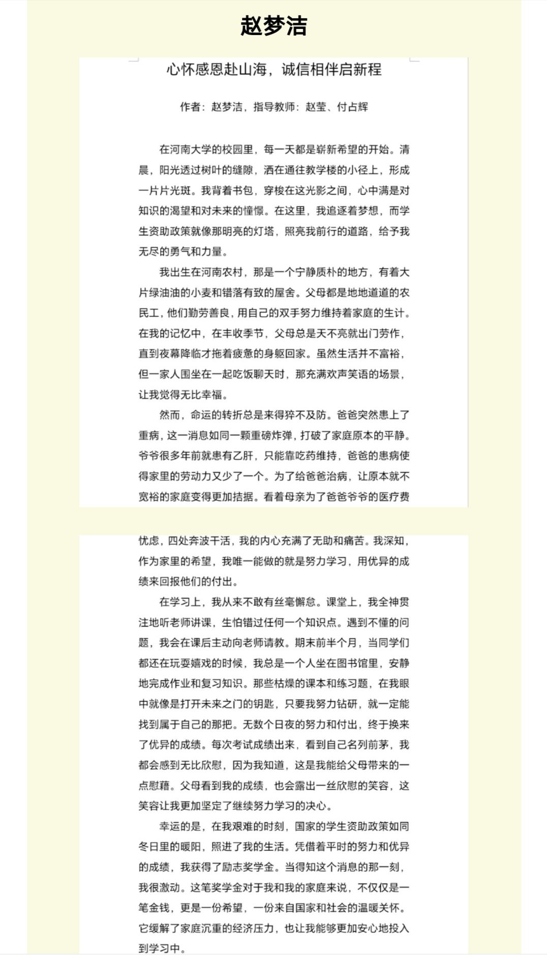 本次征文活动不仅为学生搭建了分享心声的平台,也进一步增强了他们对学生资助政策的理解与认同,为构建诚信感恩、互助共进的校园文化氛围注入了蓬勃活力。