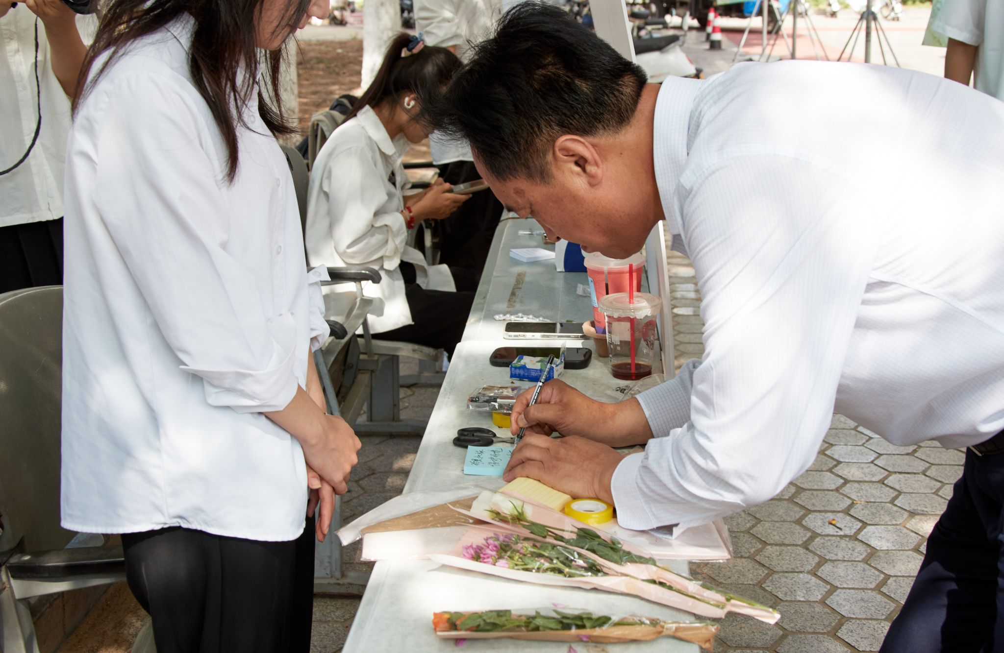 开幕式后,与会领导及专家共同前往“景兰苑”参观本次环境日的室外展览。刘彦随向在场领导与专家详细阐释了“景兰苑”的精神内涵与时代价值。他详细阐述了“景兰苑”在地理学场景式教学、环境育人中的独特定位,追溯其建设背景与发展脉络,并强调其作为校园文创实践基地,要更好地发挥传播绿色理念、培养专业人才等方面的重要作用。