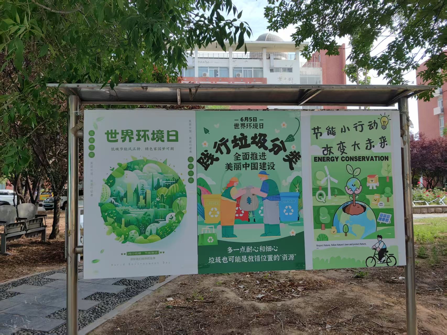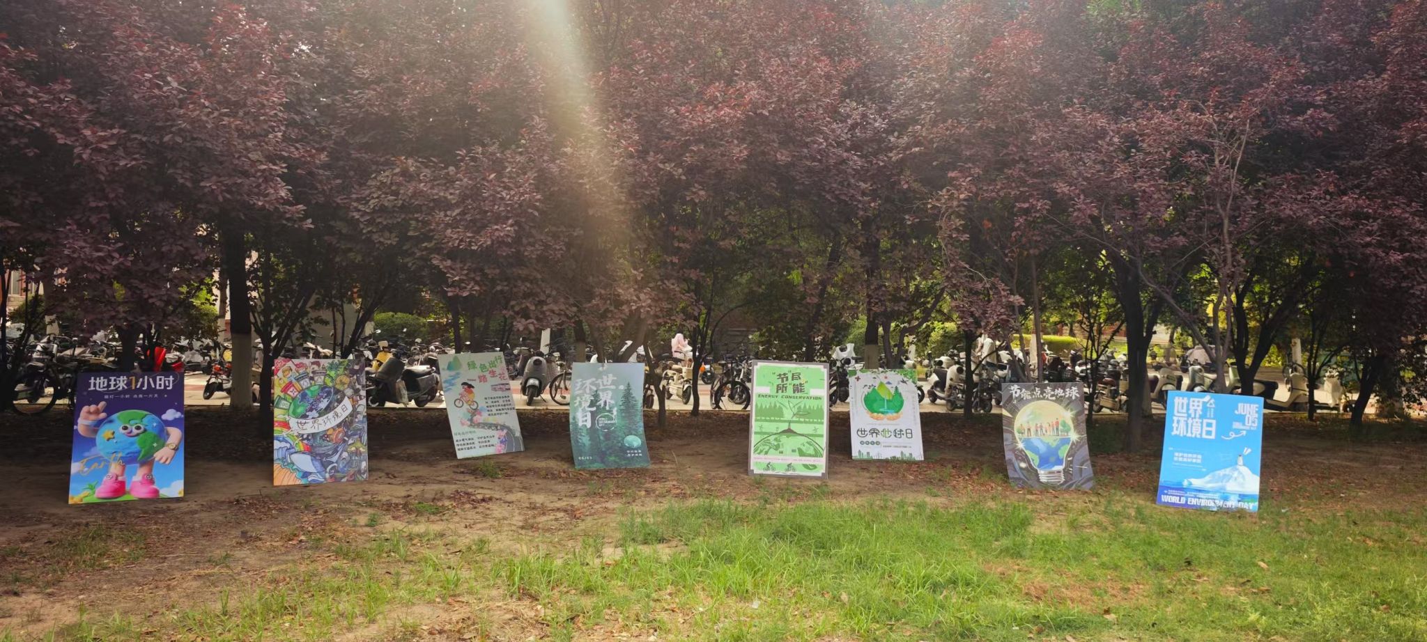 6月5日上午,经过专业评审所评选出的优秀作品在景兰苑道路两侧进行了集中展示,这些精心挑选的作品通过生动的视觉呈现和深刻的环保内涵,吸引了众多师生驻足观看和热烈讨论,也形成了形成了良好的宣传效果和社会影响力,让更多的人了解和参与到节能环保的行动中来。