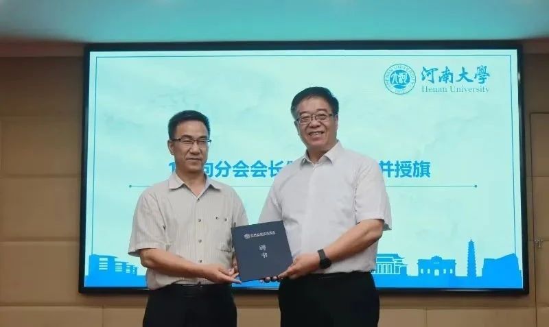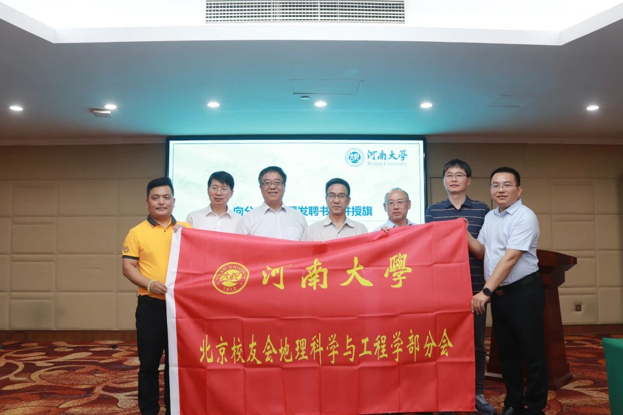 北京校友会地理科学与工程学部分会正式成立,并宣读了第一届理事会成员名单。傅声雷向会长郑新奇颁发聘书并授旗。苗长虹、乔家君、潘少奇分别为当选的副会长、秘书长、副秘书长及理事们颁发聘书。