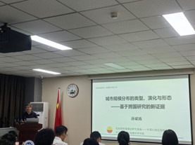 副院长丁志伟教授主持。孙斌栋在《城市规模分布的类型、演化与形态——基于跨国研究的新证据》的报告中创新性提出,城市规模分布存在四种基本类型,揭示了其演化规律中的路径依赖特征和“头部塌陷”现象,并构建了关于城市规模上限的理论假说,为城市发展规划提供了重要理论依据。