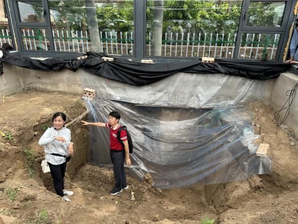 白秀玲教授为大家讲解了兰考县典型中低产潮士农田地理工程提质增效总体技术体系,重点介绍了绿色低碳“农一林一牧”复合高效模式以及“功能植物+功能动物”介导的农田病害绿色防控模式。随后,白秀玲带领师生们实地观察了小院的农田土壤剖面,阐述了盐碱地治理的工程思路;并观察了兰考重要经济作物——泡桐下的土壤剖面,其根系在兰考特有的自然环境中形成了既有横向扩展又有纵向深扎的独特分布形态。