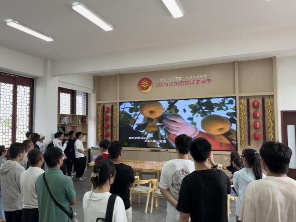 讲解结束后,实习队师生共同观看了专题纪录片,深入了解国家乡村振兴(兰考)研究院的成立背景与发展历程。纪录片生动展现了研究院从筹备到落成的关键节点,以及其在助力兰考脱贫攻坚、服务乡村振兴战略中的使命与担当,进一步加深了大家对研究院初心与实践的理解。