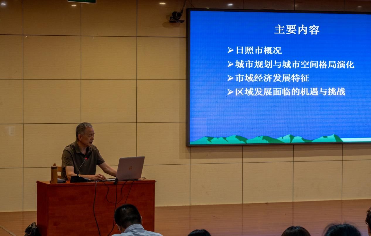院长王慧所作的专题讲座,同时实习队部分老师提前前往日照市博物馆进行参观学习。讲座中,王慧分别从日照市概况、城市规划与城市空间格局演化、市域经济发展特征、区域发展面临的机遇与挑战四个方面展开,重点分析了日照从港口起步到多中心城市的发展历程。在介绍临港产业、海洋经济、钢铁与粮油加工等主导产业的发展现状的同时,王慧也分析了城市扩张、高校迁入带来的影响以及高质量发展面临的问题,并结合最新国土空间规划探讨了日照未来的发展机遇与挑战。