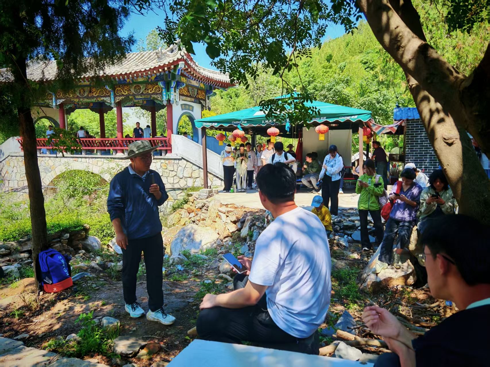 7月3日,实习队前往嵩山世界地质博物馆参观学习,深入了解嵩山地区独特的地质构造以及其演化历程。随后,实习队沿着蜿蜒的山路拾级而上,进行实地考察。在逍遥谷,学生们重点观察了洪积扇扇顶相沉积物的特点、洪积扇扇顶相沉积物特征、太古宇登封杂岩的岩性结构、辉绿岩墙特征以及逍遥谷断层及其断层三角面,进一步加深了对洪积扇形成过程和结构特征的认识。完成了一系列考察任务后,实习队伍来到太室山广场合影留念,并成功登顶峻极峰,在饱览壮丽山景中深化了对嵩山地质地貌的认识。