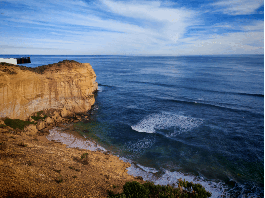 中午,实习队在阿波罗湾停留午休并参观了阿波罗湾沙滩。阿波罗湾地处大洋路中段,是理想的中途休息点,以其新鲜的海鲜和悠然的港湾风光著称。该区域沙滩主要由中粒至细粒的钙质(富含碳酸钙)沙子组成,且沙源主要来自海洋与沿岸区域,同时,该地区的沿海地形特征也清晰反映出波浪长期侵蚀与地壳隆升过程共同作用的痕迹。