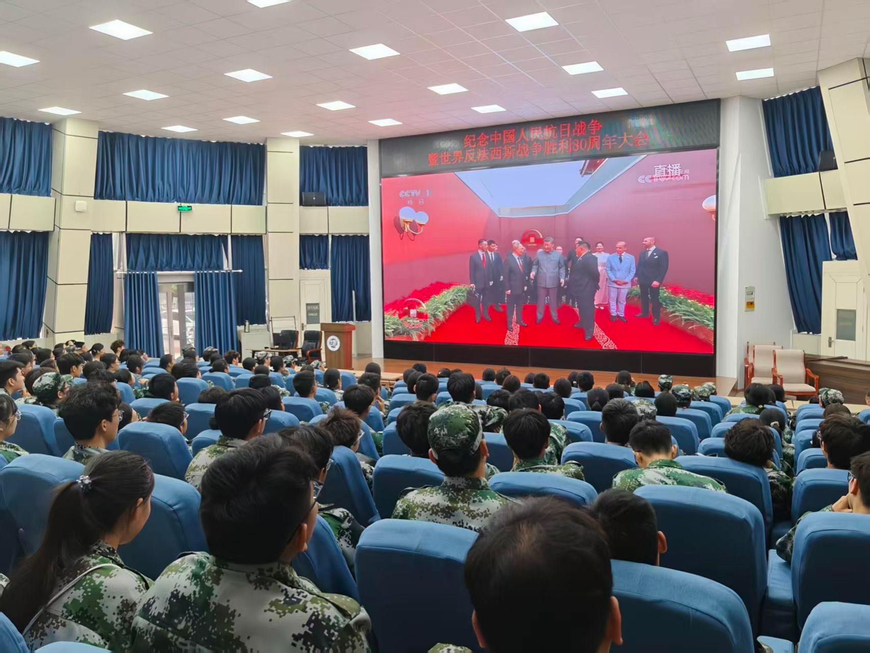 9月3日,纪念中国人民抗日战争暨世界反法西斯战争胜利80周年大会在北京天安门广场隆重举行。为深切缅怀革命先烈,弘扬伟大抗战精神,激发我部2025级本科新生的爱国热情和民族自豪感,当天上午,我部组织2025级全体本科新生于金明校区景兰报告厅观看九三阅兵仪式直播,共同见证这一承载着民族记忆与时代强音的庄严盛典。