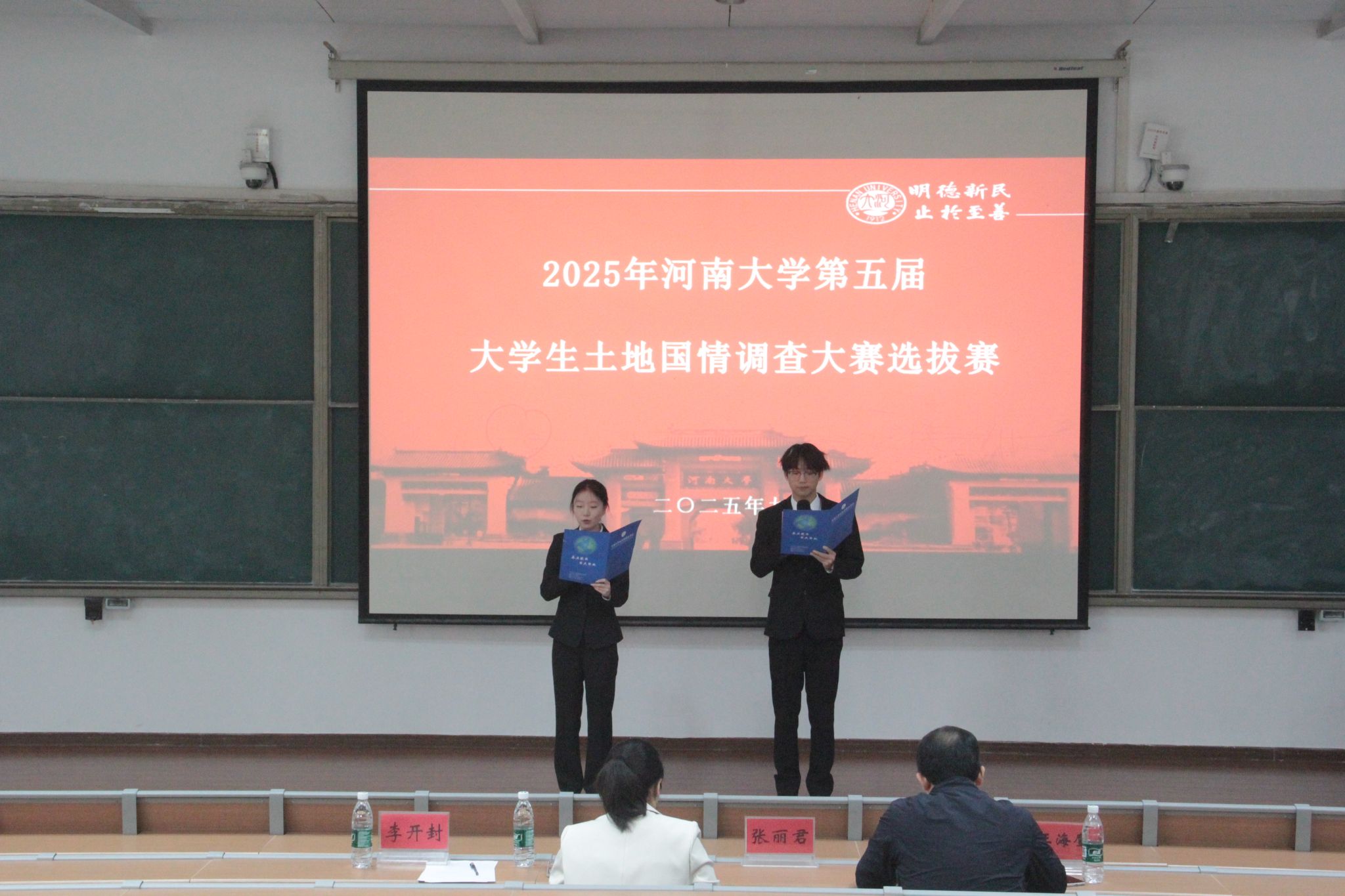 第五届大学生土地国情调查大赛选拔赛。此次比赛由区域与城市科学系副主任张丽君、河南省时空大数据技术创新中心副主任王海鹰、地理科学系副主任李开封担任评委,2024级本科生赵雨梦、张正阳担任主持。
