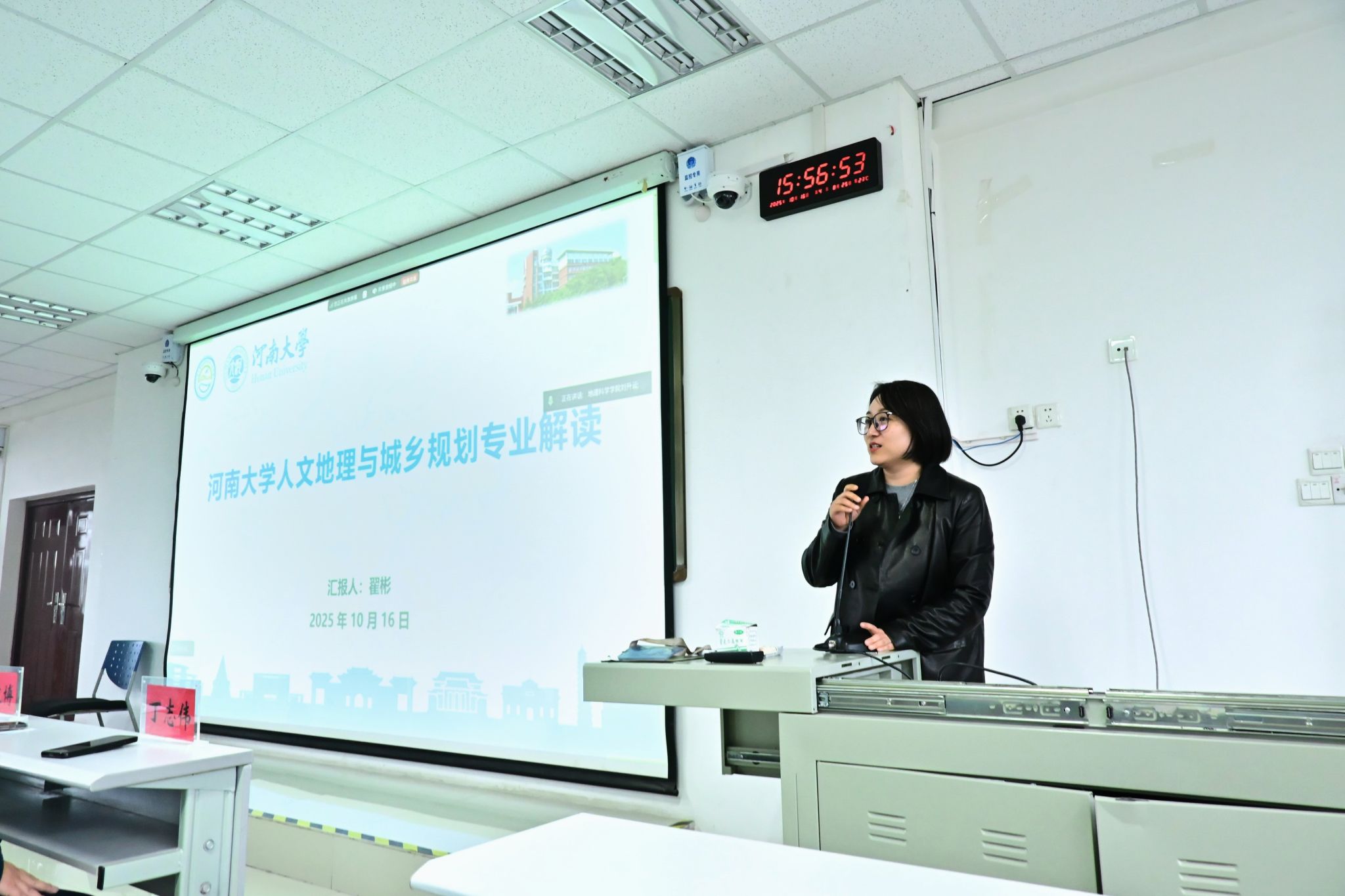副院长丁志伟、地理科学系副主任朱文博、区域与城市科学系系主任翟彬、地理信息科学系系主任翟石艳、环境科学系副主任李涛、测绘工程系系主任张喜旺、地理工程系副主任李晗、地理工程系老师冯巍仑和教务办主任刘德新出席此次宣讲会,2025级全体本科生参与此次宣讲会。会议由2025级辅导员刘升云主持。