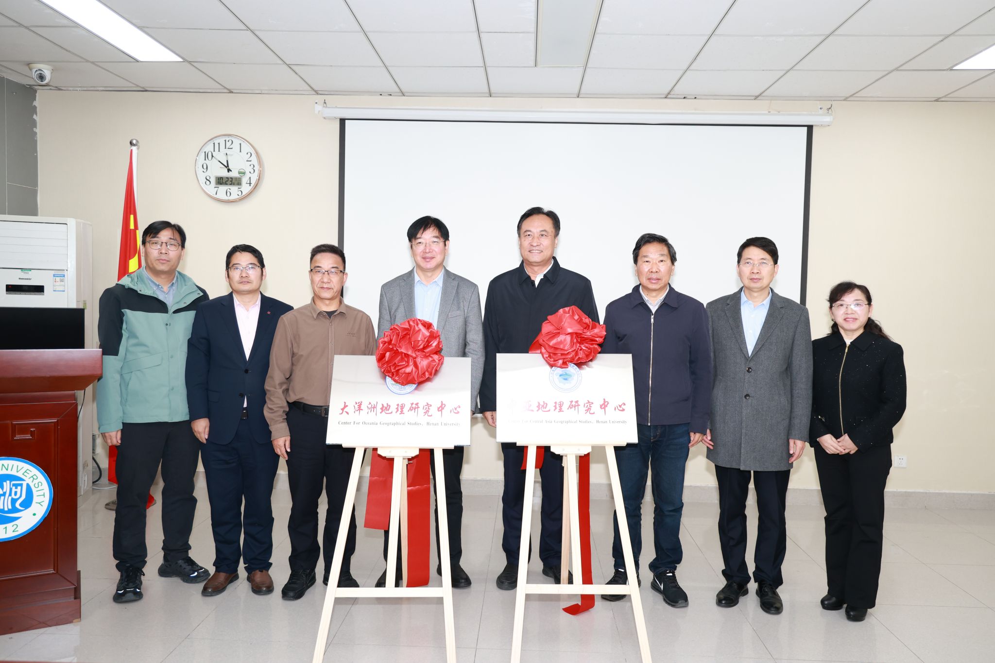 在推动地理学科国际化、服务国家对外开放战略方面迈出关键一步,开启了新时代地理科学与工程学部在世界地理研究领域研究的新篇章。澳大利亚皇家墨尔本理工大学刘钢军教授、哈萨克斯坦国立大学Omarov Gani Kalikhanovich教授作为外方联合共建单位的负责人通过线上方式参与仪式,表示将全力支持两大中心建设,携手打造具有地域特色、学科特点和国际影响力的重要学术研究与合作交流平台。