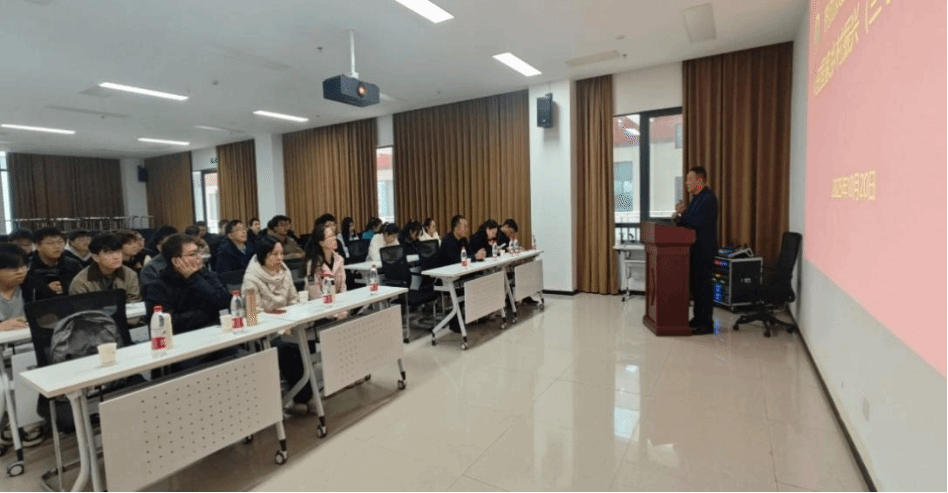 副院长、研究院副院长邱永宽系统介绍了研究院的战略定位、发展规划与创新使命,并重点阐释了地理信息技术与工程方法在服务乡村振兴和数智乡村建设中的核心支撑作用。研究院办公室主任仝致琦老师随后进行了研学期间的安全教育培训。 测绘遥感工程系主任张喜旺老师主持研学动员会,对研学行程进行了周密部署。