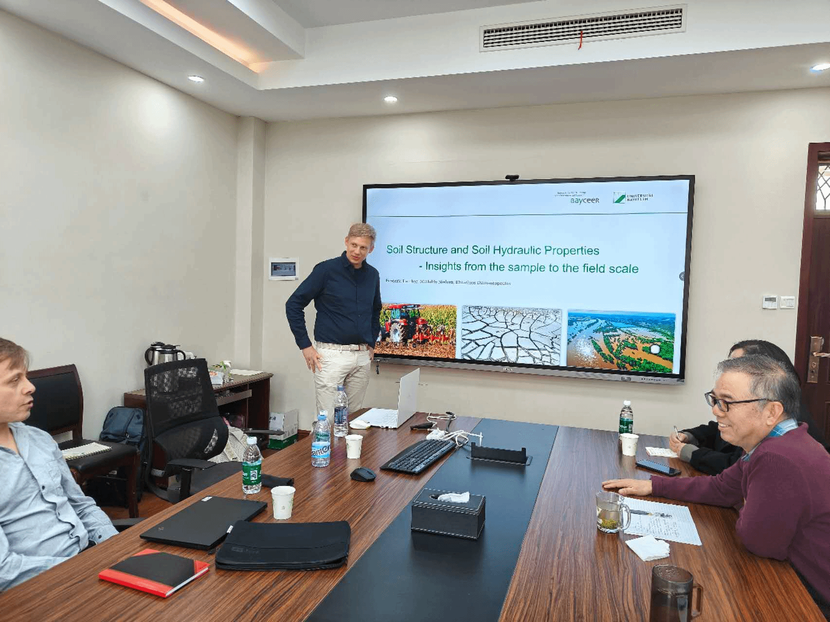 随后,Frederic Leuther以“土壤结构与土壤水力特性:从样本层面到整体范围的分析结论”为题,系统介绍了其研究团队在不同样本数,不同研究区范围及不同角度下土壤结构变化与土壤水动力的特性,展示了如何将微观样本的水力特性数据(如孔隙尺寸分布、有机质含量)与野外大尺度监测(如农田排水系统流量、地下水水位)结合,构建“样本-整体”关联模型,为探究微观层面的土壤结构特性与非点源污染精准防控提供了新思路,在农业管理(如灌溉优化、农药施用风险评估)和生态修复(如盐碱地治理)中的研究分析提供了新启发。