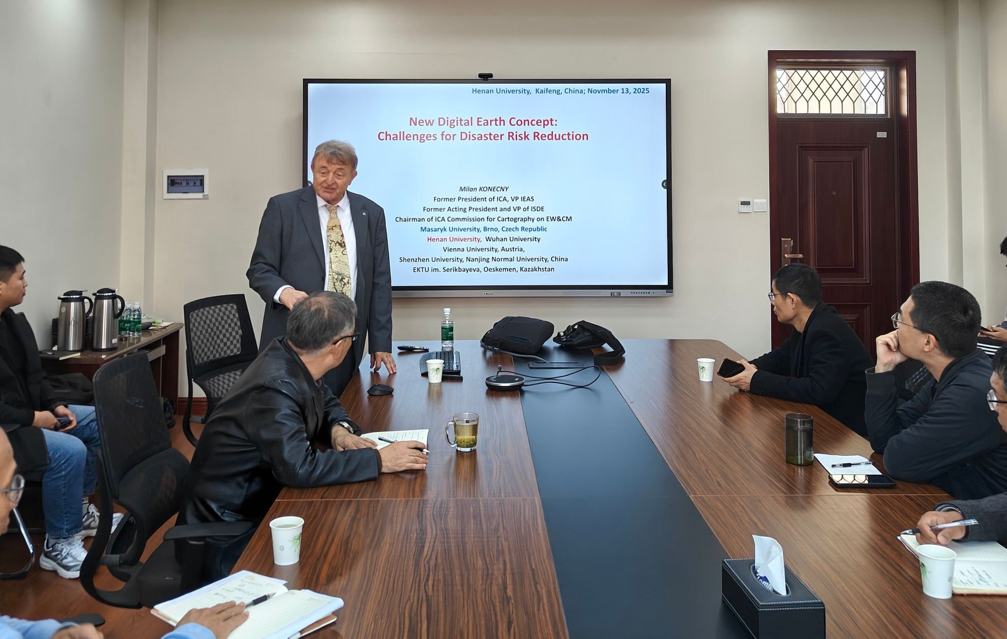 院士、捷克共和国马萨里克大学Milan Konečný教授,于地学楼三楼301会议室作题为《New Digital Concept Challenges for Disaster Risk Reduction》的专题报告。报告会由秦明周教授主持,我部相关专业师生参与此次交流研讨。