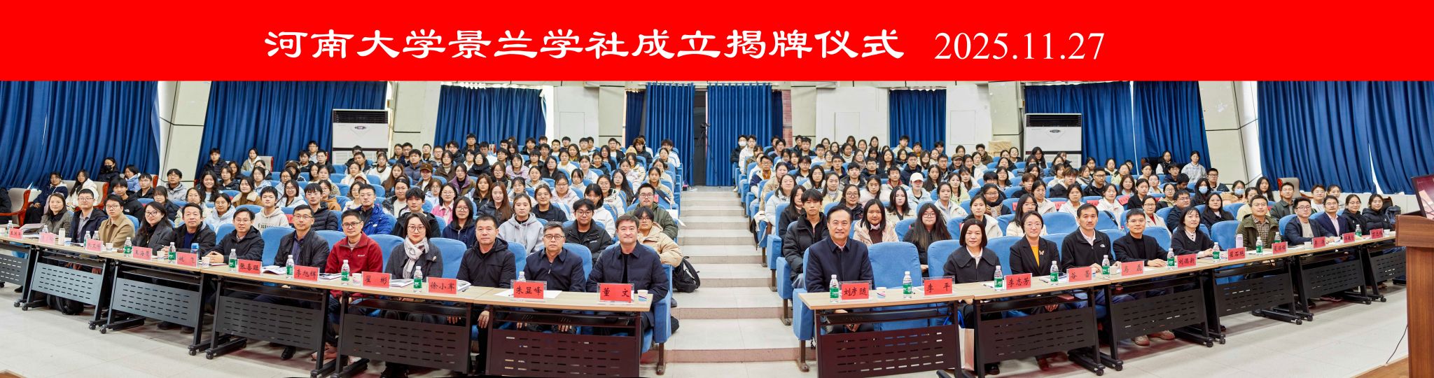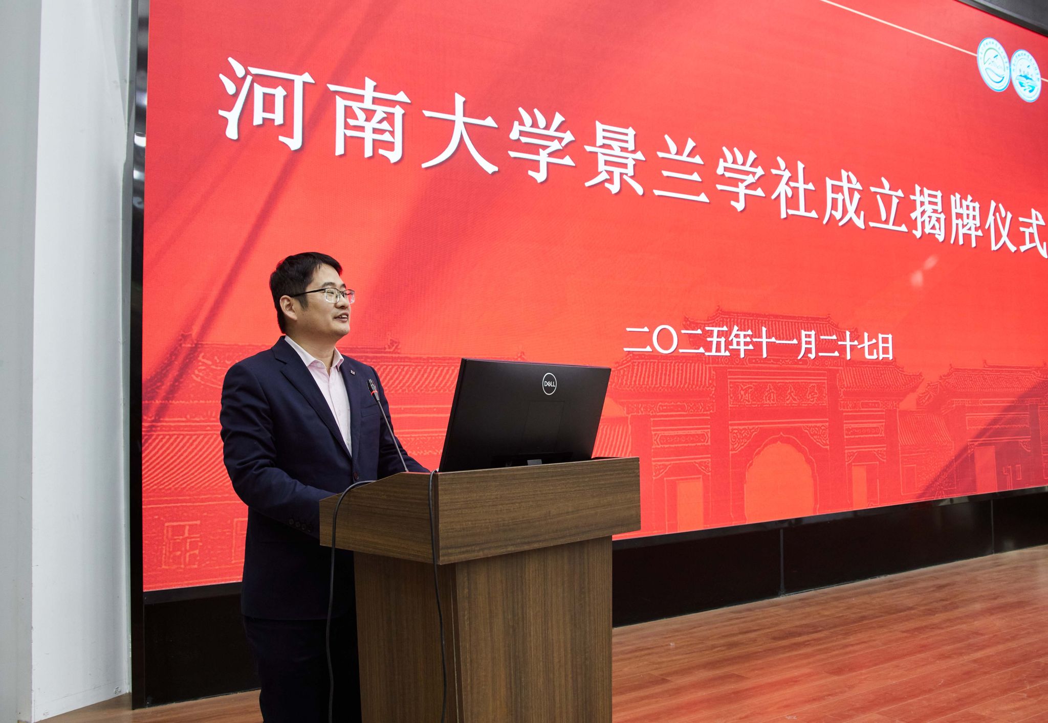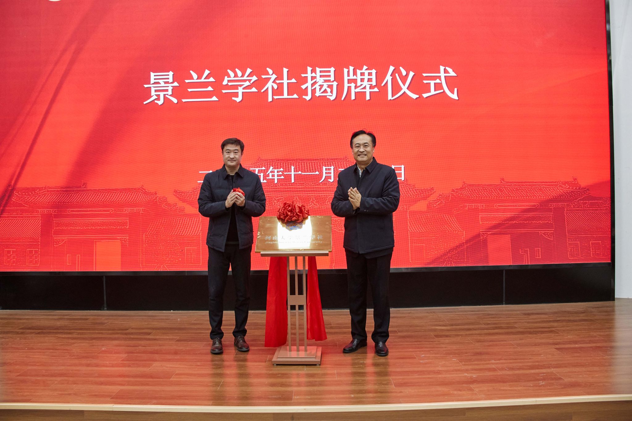 揭牌仪式环节,刘彦随和董文共同为景兰学社揭牌。随后,刘彦随为学社社长授旗,并与学社骨干成员展旗合影。