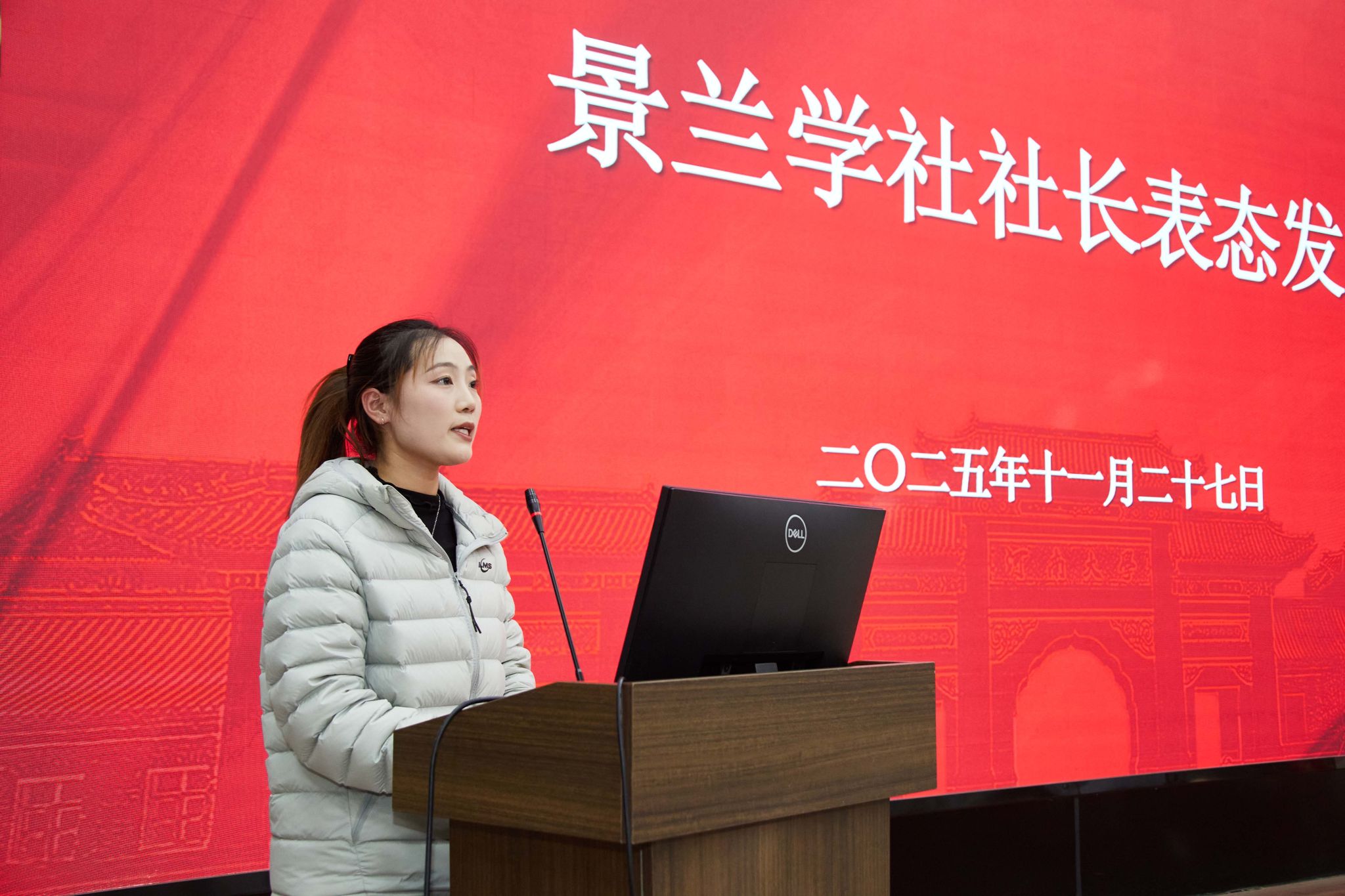 仪式结束后,景兰学社代表顾世博领誓,全体社员齐声宣读“勤学笃行、勇于探索、知行并进”的誓词。铿锵誓言在报告厅久久回响,展现了景兰学社昂扬向上的精神风貌。