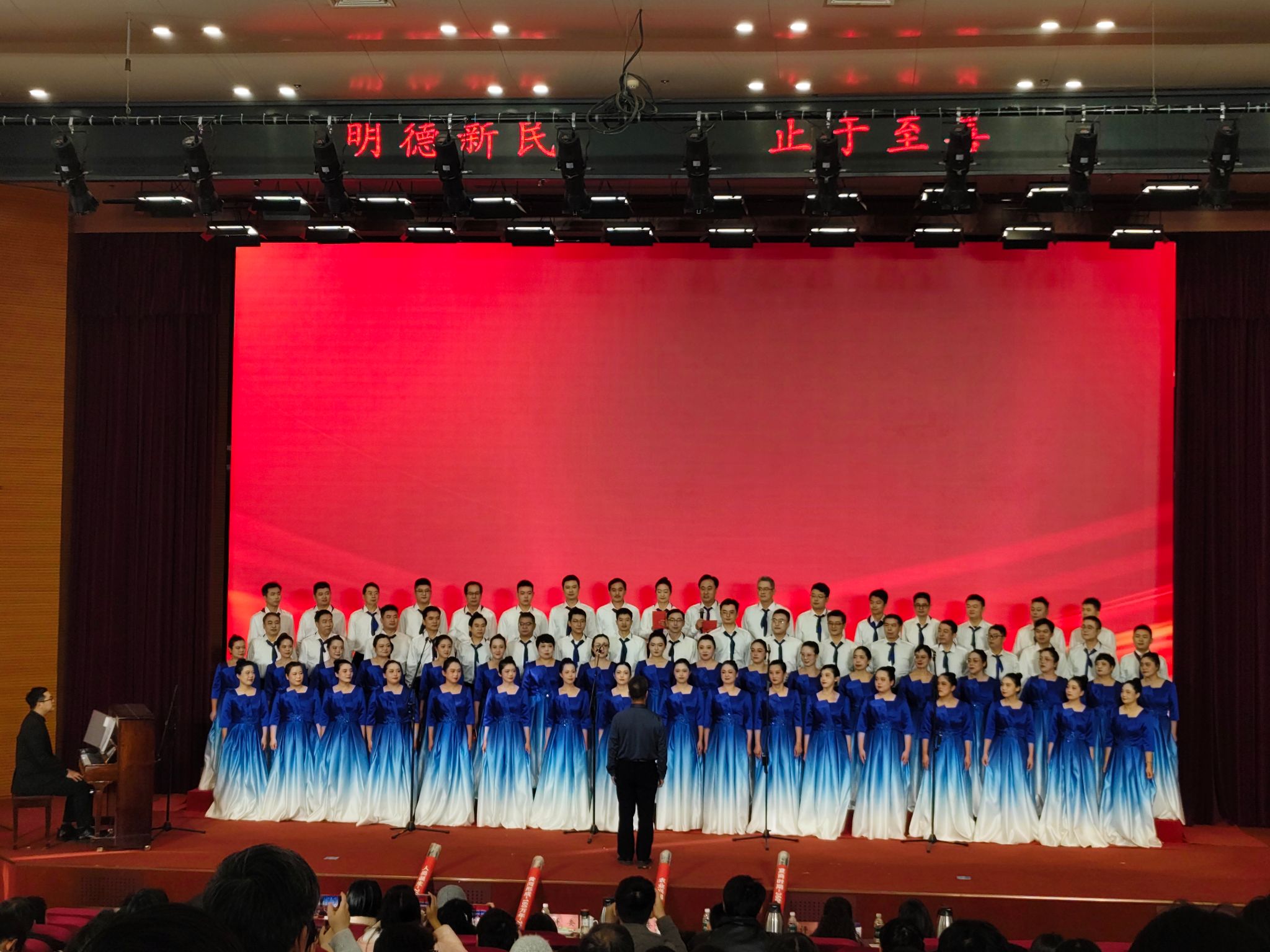 “传承红色基因·唱响时代强音”教职工合唱比赛在金明校区图书馆一楼报告厅隆重举行。地理科学与工程学部副主任傅声雷担任指挥,成人漫画