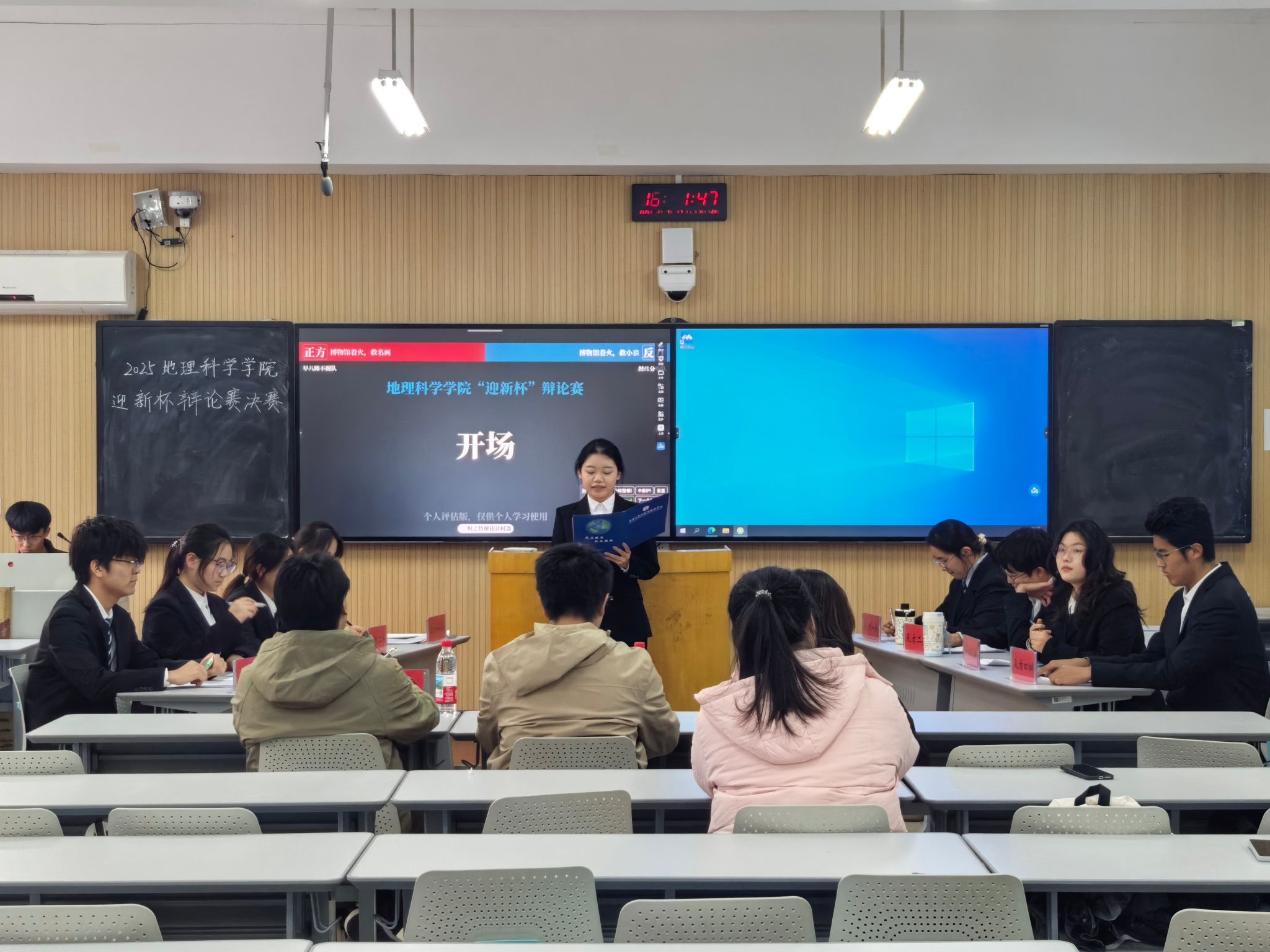 为锤炼我部学子的思辨能力、提升语言表达素养,培育团队协作精神、丰富校园文化生活,我部举办了以“辩理求是,论道启真”为主题的“迎新杯”辩论赛。历经初赛、复赛、半决赛的多轮激烈角逐后,“早八睡不醒队”与“经纬分明队”成功晋级,于12月7日下午在金明校区综合教学楼3203教室举行决赛。本次决赛由我部2025级本科生郝筝主持,2023级本科生陈国玺、李皓文和2024级本科生王晓静担任评委。
