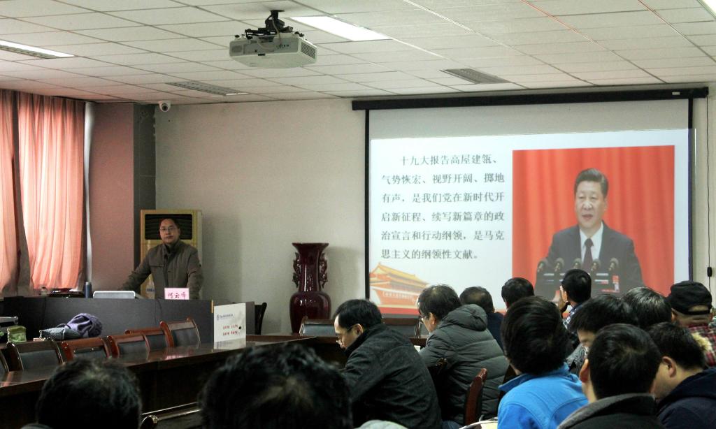 为深入学习贯彻党的十九大精神,12月14日下午,校宣讲团成员、哲学与公共管理学院何云峰教授应邀在环境与规划学院二楼报告厅为学院全体教职工作了以“昂首阔步走进新时代”为主题的党的十九大精神宣讲报告会。报告会由院党委书记闫峻主持。