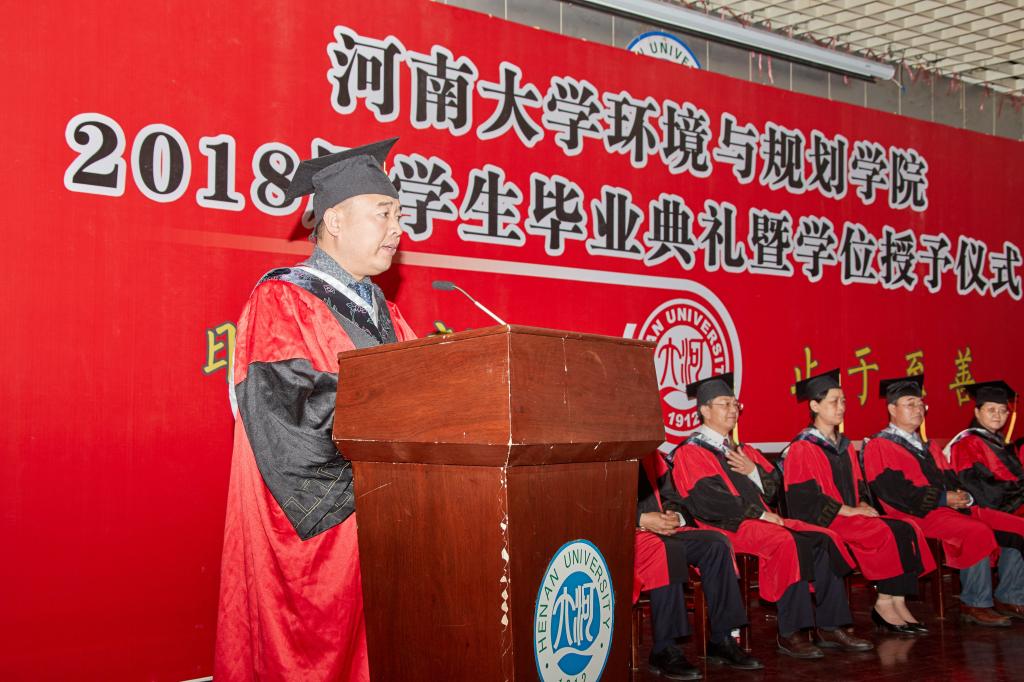 毕业生王松代表全体2018届本科毕业生向学校、学院和各位老师表达衷心的感谢,他在演讲中重温大学四年的点点滴滴,感谢老师们的辛勤栽培,一定会谨记老师们的谆谆教诲,成为河大精神财富和优良传统的继承者与传递者。2017级易思岐作为在校生代表为学长学姐们送上祝福,感谢他们无微不至的关怀和细心指导,祝愿他们早日实现自己的人生理想,在新的道路上一帆风顺。