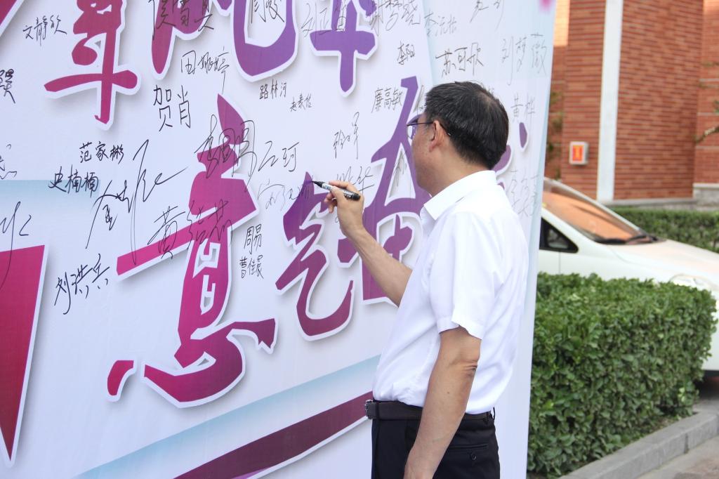 迎新工作期间,校长宋纯鹏一行学校领导来到学院迎新工作地点,详细了解迎新工作情况,对工作人员致以慰问,并在签名墙上签名留念。学院党委书记闫峻、党委副书记徐小军、副院长潘少奇等也多次来到新生报到点,与新生及家长亲切交谈,并对迎新工作的具体细节进行叮咛嘱托。