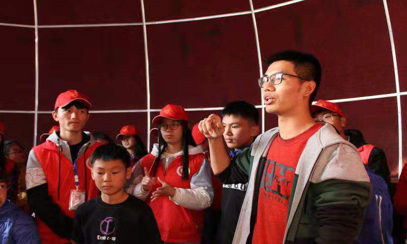 本次兴趣课活动以一对一的形式展开,每名志愿者带领一名儿童参与课堂,陪伴小朋友们使用天文望远镜进行观测。活动伊始,北辰天文社社员张凯向参加活动的小朋友们简单介绍了天文望远镜的原理和构造以及太阳系的行星组成,让小朋友们对天文有了初步的了解。社长孙嘉阳向小朋友介绍了使用天文望远镜观测太阳的视觉效果,“太阳系有几大行星?”她向孩子们提问道,“8颗!”稚嫩的童声在天文包各处响起,天文知识的问答,使课堂氛围逐渐升温,提高了小朋友们对天文知识的兴趣。活动结束后,参与活动的儿童与志愿者们在学院楼下合影留念。
