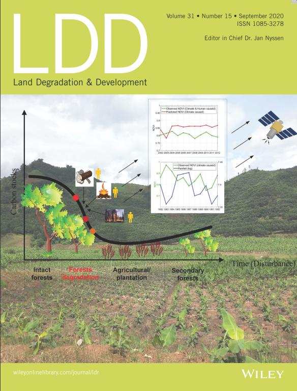近日,环境与规划学院卢鹤立教授课题组在森林退化遥感监测方面取得重要研究进展,相关成果被《Land Degradation & Development》选为期刊封面(//onlinelibrary.wiley.com/toc/1099145x/2020/31/15)。