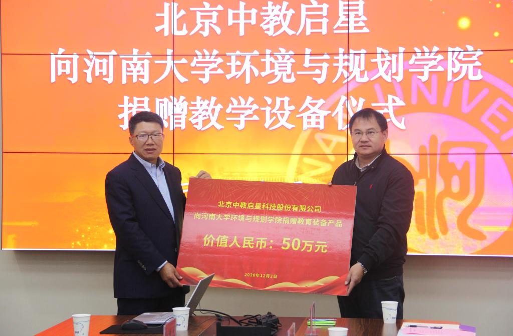 此后,捐赠仪式正式开始,中教启星总裁王天祥捐赠,环境与规划学院党委书记郑洪涛代表学院接受捐赠。