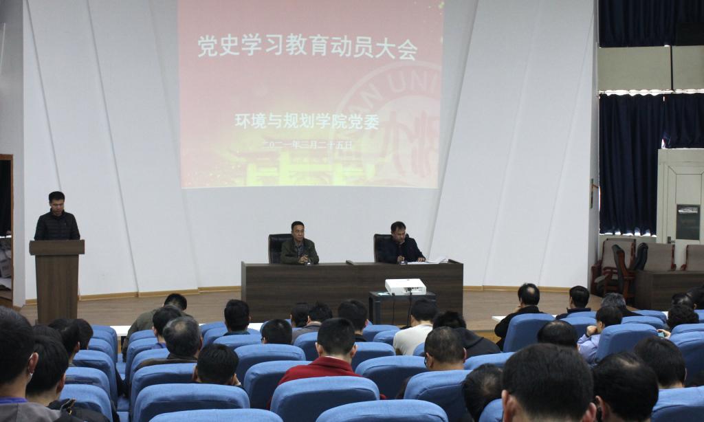 3月25日,环境与规划学院在锥形报告厅召开党史学习教育动员大会,全体教职工、学生代表参加,会议由环境与规划学院党委书记郑洪涛主持。