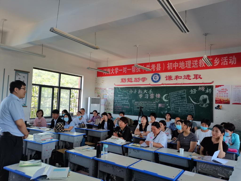 环境与规划学院副教授、硕士生导师张广花前往兰考县开展本次一对一帮扶活动,并邀请郑州市教研室地理教研员、河南省学科带头人、郑州市名师赵丽霞,开封市集英中学一线(地理)骨干教师谢奥宇参与。