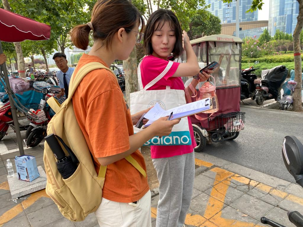 地理与环境学院暑期“三下乡”社会实践调研团就绿色出行行为及低碳出行理念,在开封市各居民社区内开展了相关调研宣传活动。