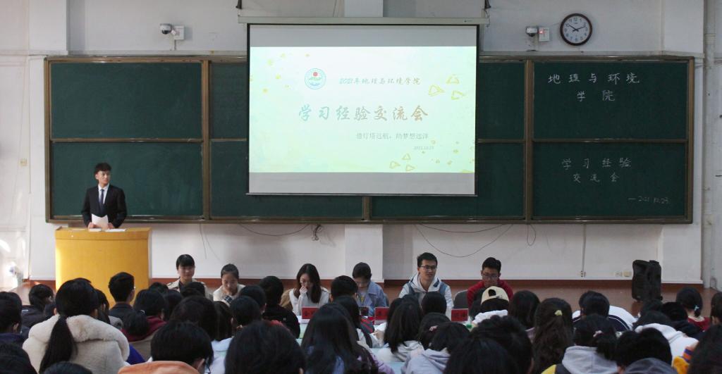 介绍、学习经验分享、学术竞赛讲解、学生提问和有奖知识问答五个环节。此次活动共邀请了6位地理与环境学院2019级优秀学生代表,分别是地理科学实验班刘徐然、徐宇佳,地理信息科学班郭同泽,人文地理与城乡规划班李孟娟,地理科学班金艺辰和环境科学班马嘉玉。