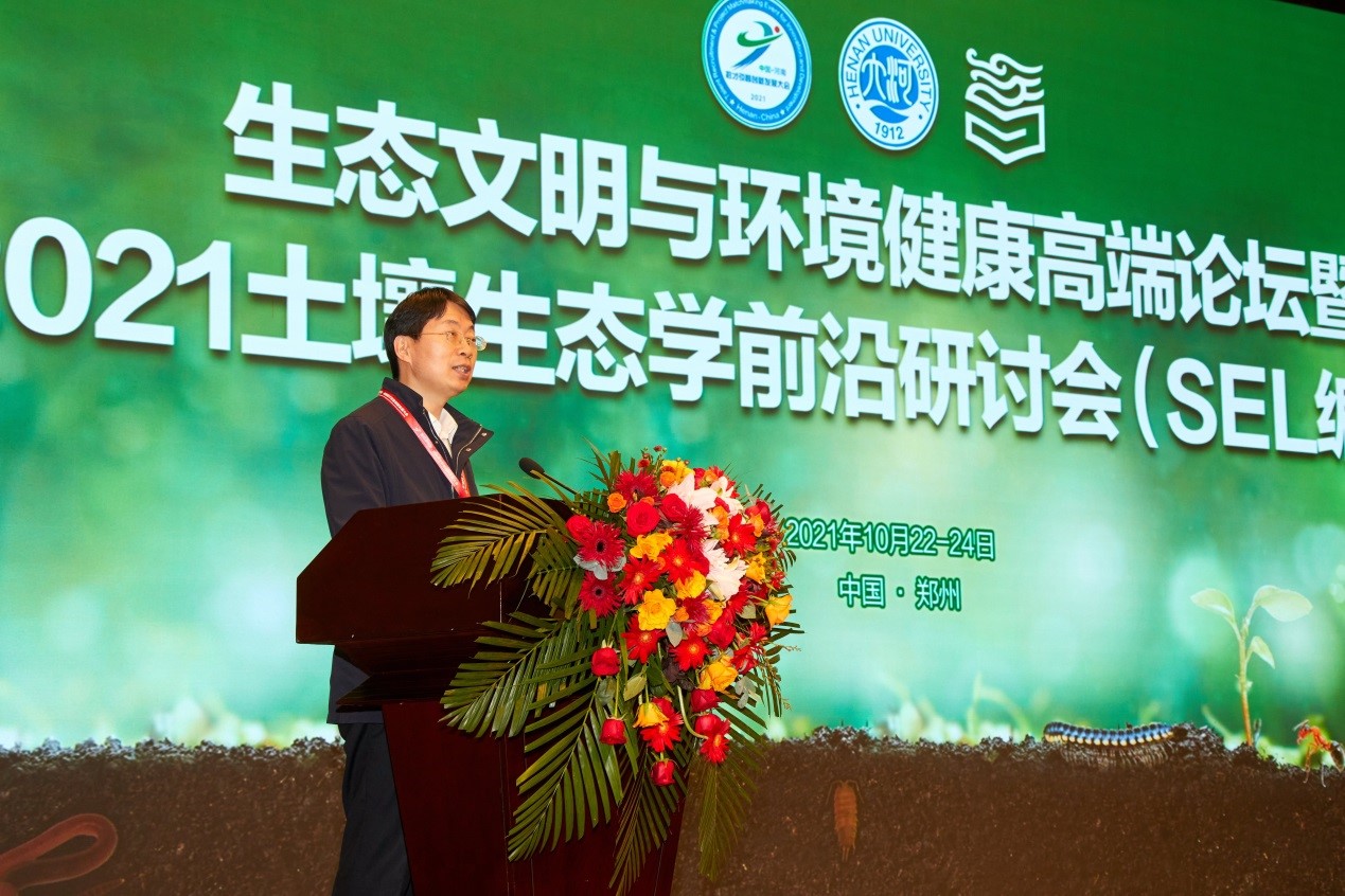 地理与环境学院、Soil Ecology Letters 期刊承办,会议采用“线上线下融合”方式进行。来自全国各地土壤生态学、土壤微生物学、土壤动物学等相关领域的200多位专家、学者线下参会,3000多人线上聆听。本次研讨会以“ 生态文明与环境健康”为主题,围绕近年来土壤生态学领域的前沿和核心问题展开研讨与交流。