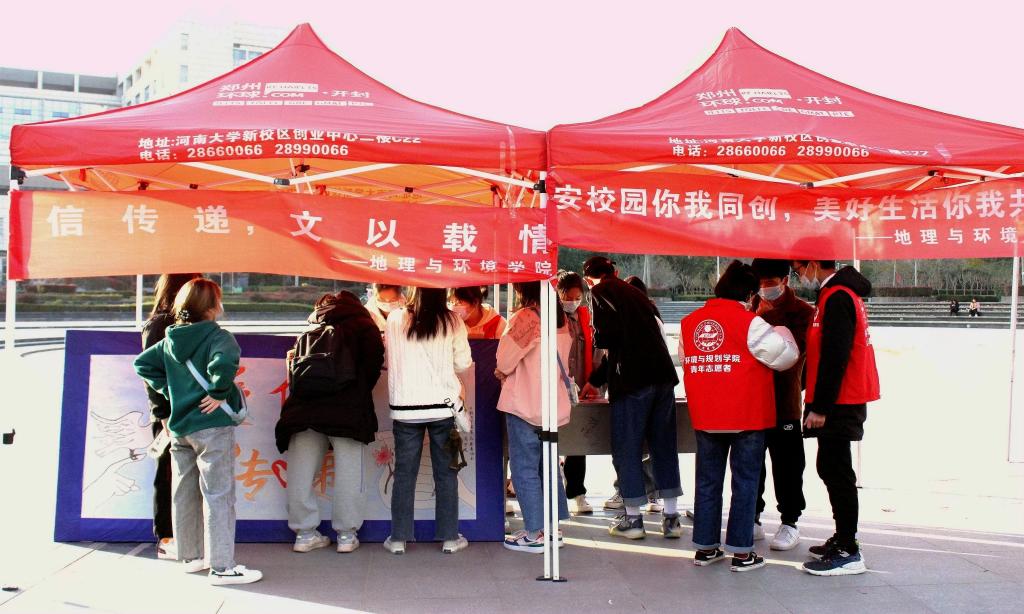 作为地理与环境学院青年志愿者协会的传统活动之一,爱“信”传递以纸质信件为核心,结合每年活动开展期间的宣传主题对具体活动内容和信件样式进行适当修改,使活动更加贴合实际。活动旨在帮助校园学生传递彼此感情,增进学生情谊,并结合学校宣传主题为学校建设做出贡献,同时也使青协的新成员从中体验志愿活动乐趣,提高组织内部凝聚力。