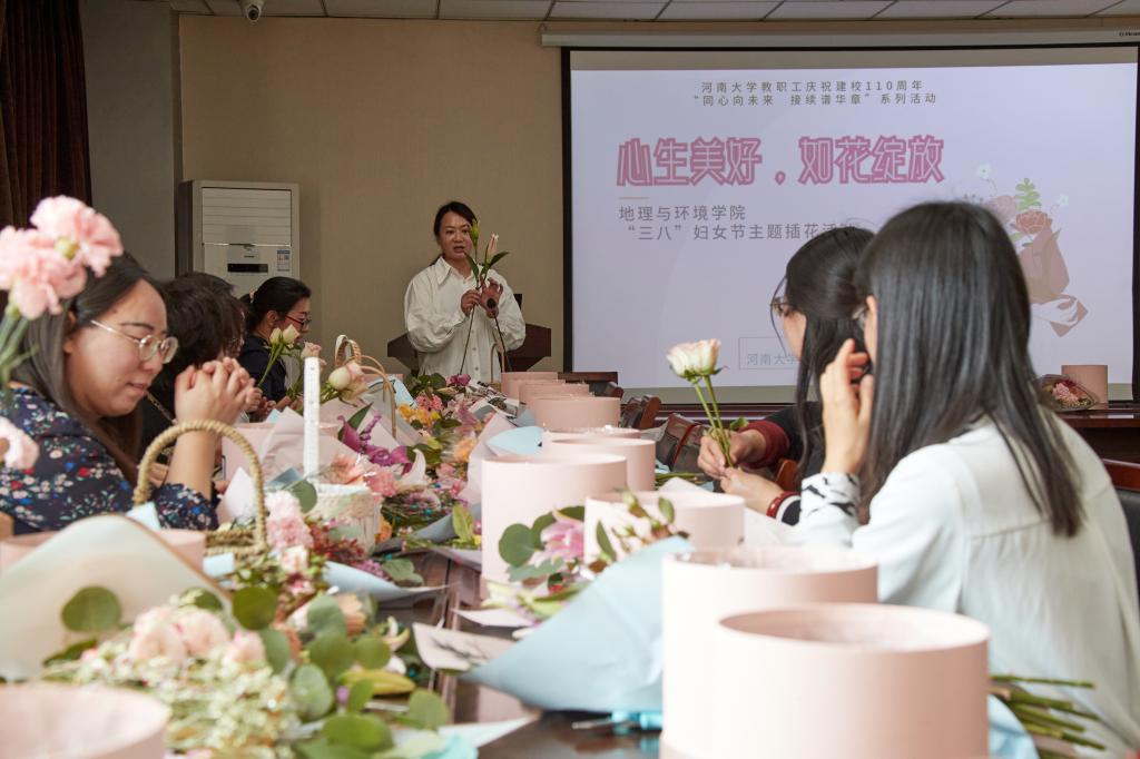 建校110周年、纪念“三八”国际劳动妇女节112周年,丰富广大女职工的精神文化生活,3月7日中午,由我院工会委员会、女工委员会主办的“心生美好,如花绽放”主题插花活动在学院二楼报告厅举行。我院副院长、工会主席邱永宽,副院长赵威,党委副书记徐小军出席活动。