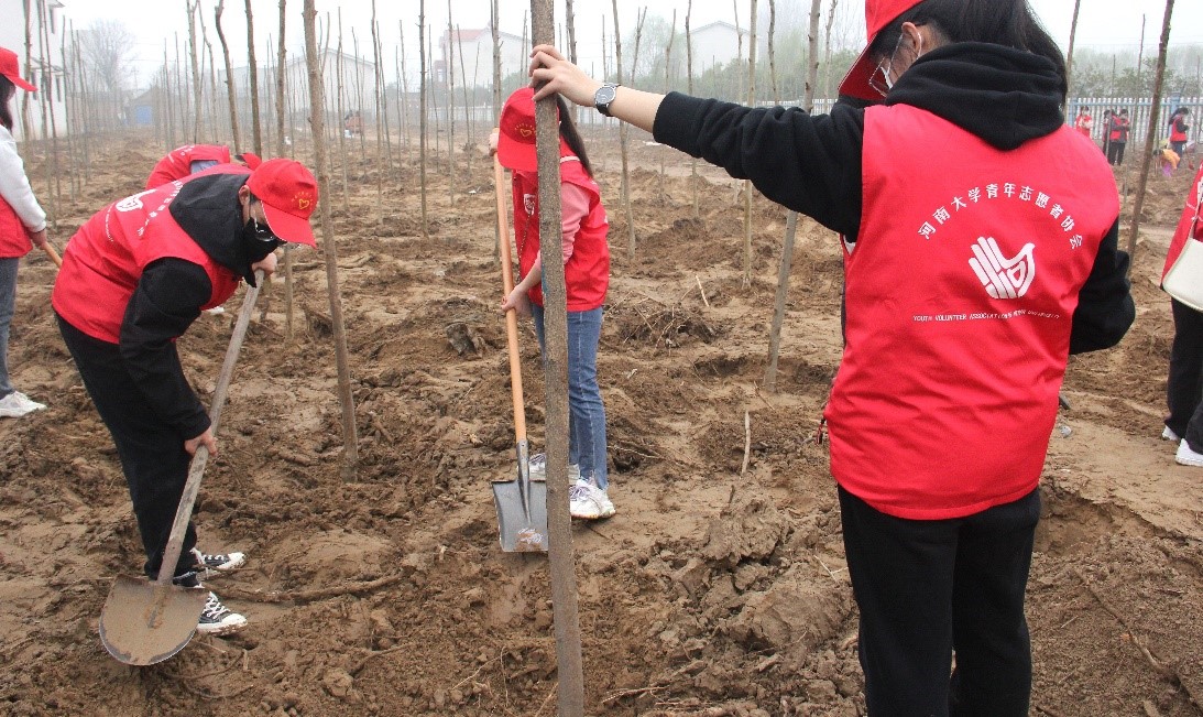 青年志愿者协会、物理与电子学院青协、数学与统计学院青协、临床医学院青协联合参与。在北官庄村委会相关负责人的大力支持和配合下,活动志愿者拿着铁锹、扛着树苗,与林场看护人员一起植树造林,以实际行动绿化生态环境。活动共植树百余棵,在黄土地上撑起了一片绿色。