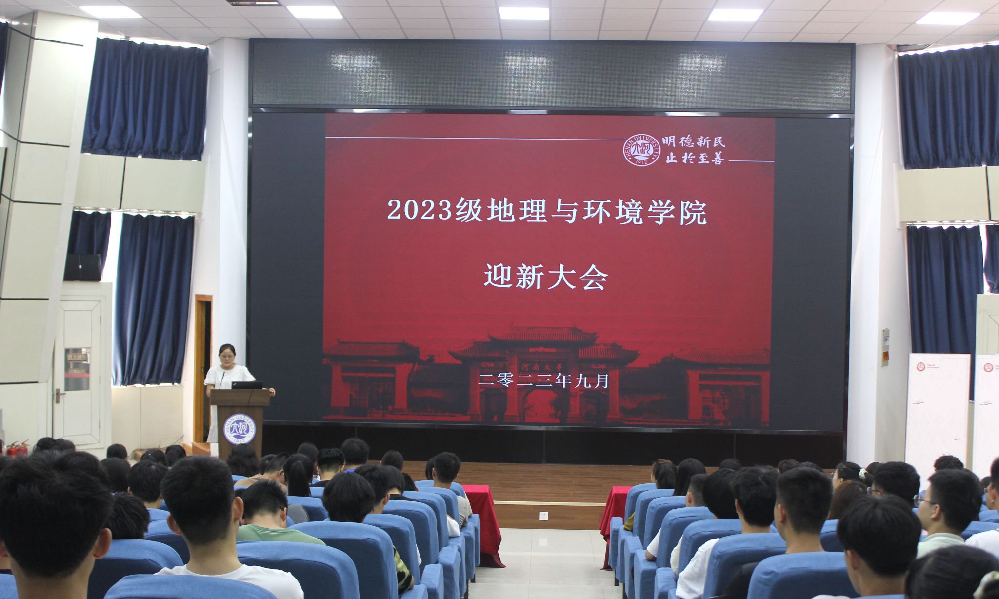 时光荏苒,落英缤纷。我院迎来了充满蓬勃朝气、怀揣远大志向的2023级本科新生。为帮助学生快速适应大学生活,明确新学期的发展规划,9月6日上午,我院于金明校区锥形报告厅召开2023级地理与环境学院迎新大会。本次会议由2023级辅导员屈利铭主持,2023级全体本科生参加。