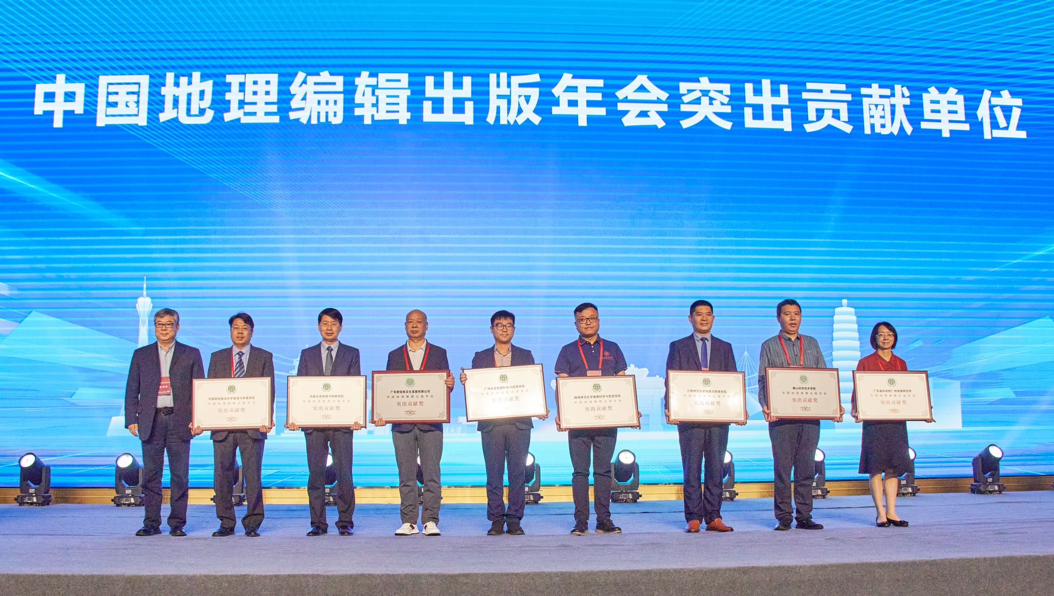 地理与环境学院等九所单位颁发了“中国地理编辑出版年会突出贡献单位”,并对其长期以来对中国地理学发展和中国地理学会建设做出突出贡献的单位和学者致以诚挚谢意。