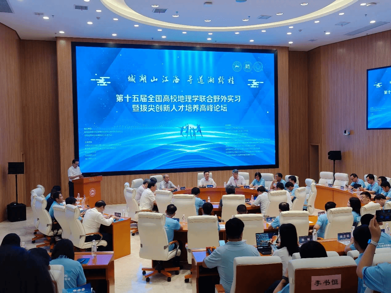 7月29日上午,实习开幕式于湖南师范大学图书馆会议厅隆重召开,贺灿飞教授与鹿化煜教授针对地理学拔尖人才的培养进行了主旨汇报,提出应当将地理学理论与野外实践紧密结合;湖南师范大学饶志国教授与毛德华教授分别introduced了湖南的历史文化与人地关系。开幕式结束,师生进行合影留念。