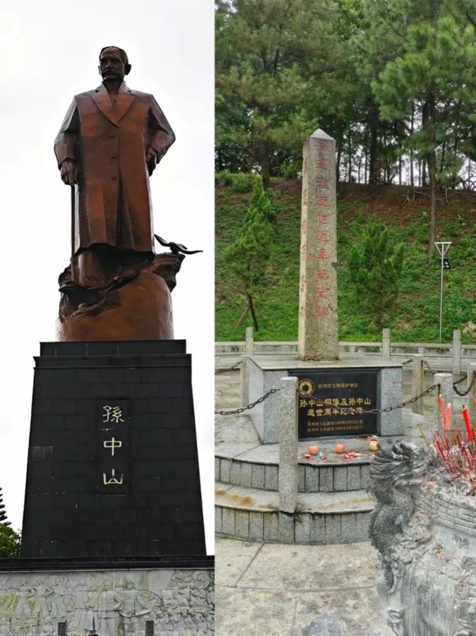 仙岛公园风轮台内矗立着一座于1926年制作的孙中山纪念碑,纪念碑上屹立了世界上最高的孙中山铜像,铜像底座四周镌刻辛亥革命时期的群体浮雕。这些浮雕记录了1907-1908年孙中山先生亲临钦廉防城起义和上思起义的历史。